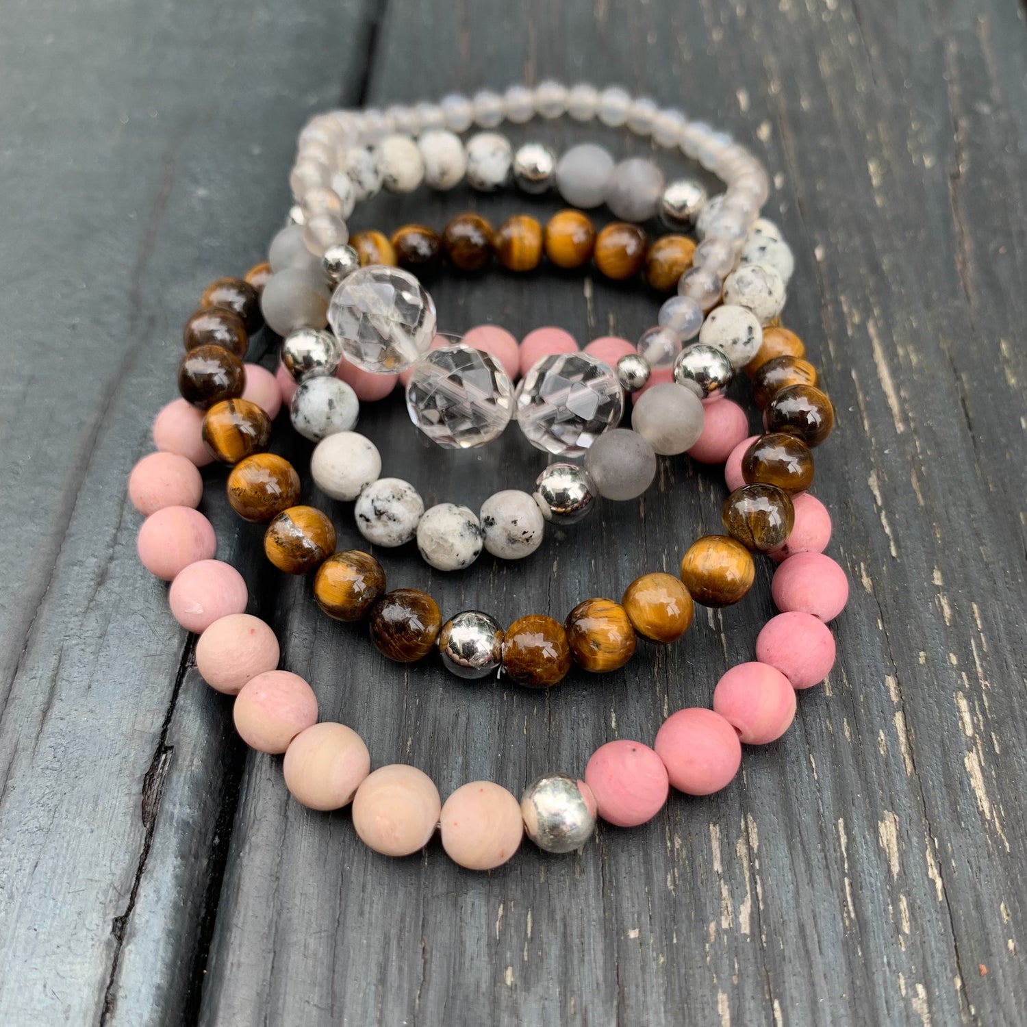 Gemstones are naturally-occurring materials, so beads cut from them often carry 'imperfections' (called inclusions) and variations that enhance their beauty and make each bead--and the bracelets they're made with--unique.